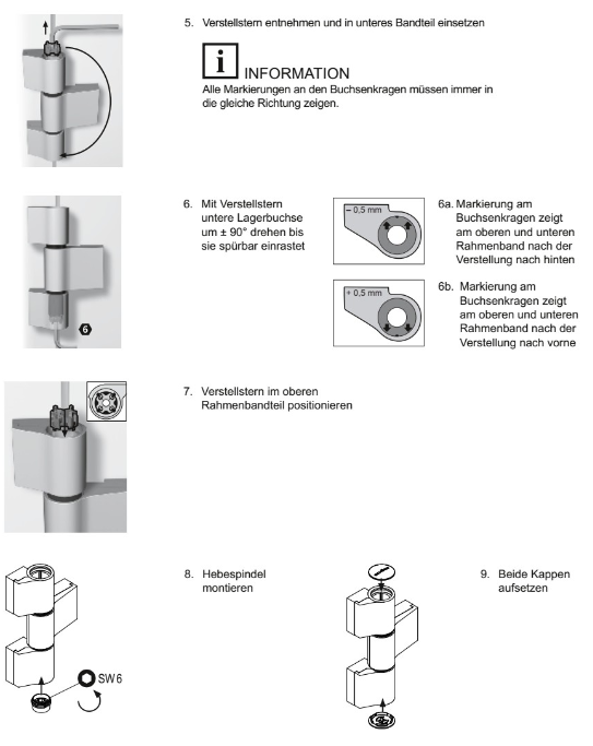 Bei den gängigsten Türbändern funktioniert dies wie folgt: