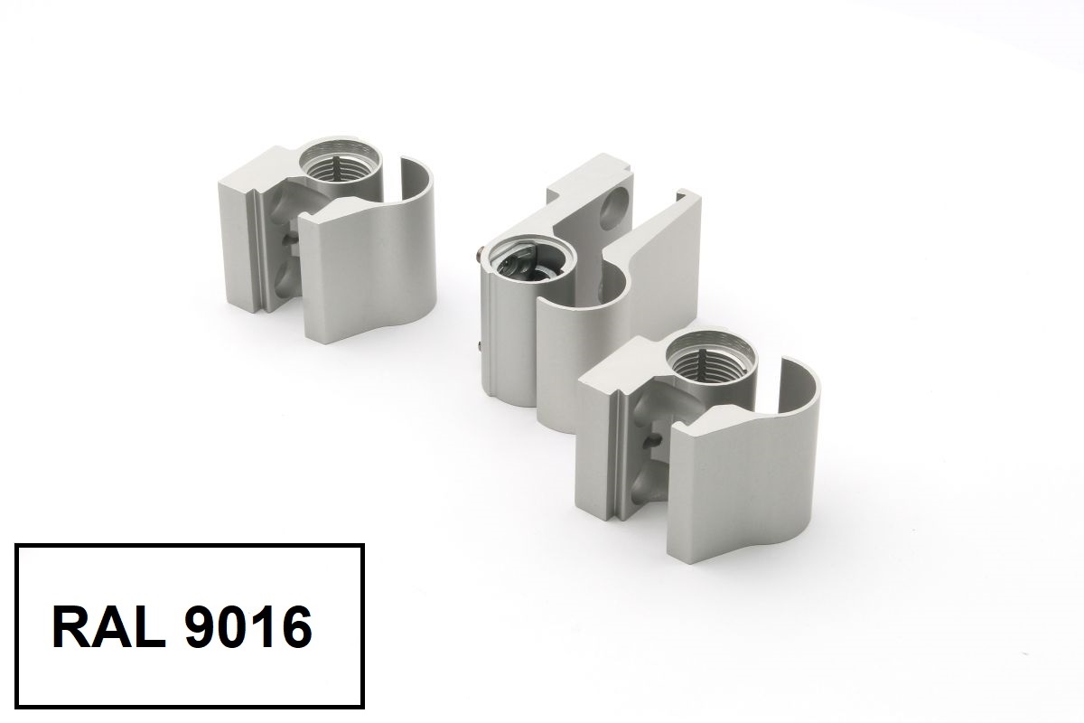 Dreiteiliges Schüco Aluminium-Aufsatztürband für nach innen oder außen öffnende Türen in weiß mit einem Achsmaß von 22 mm