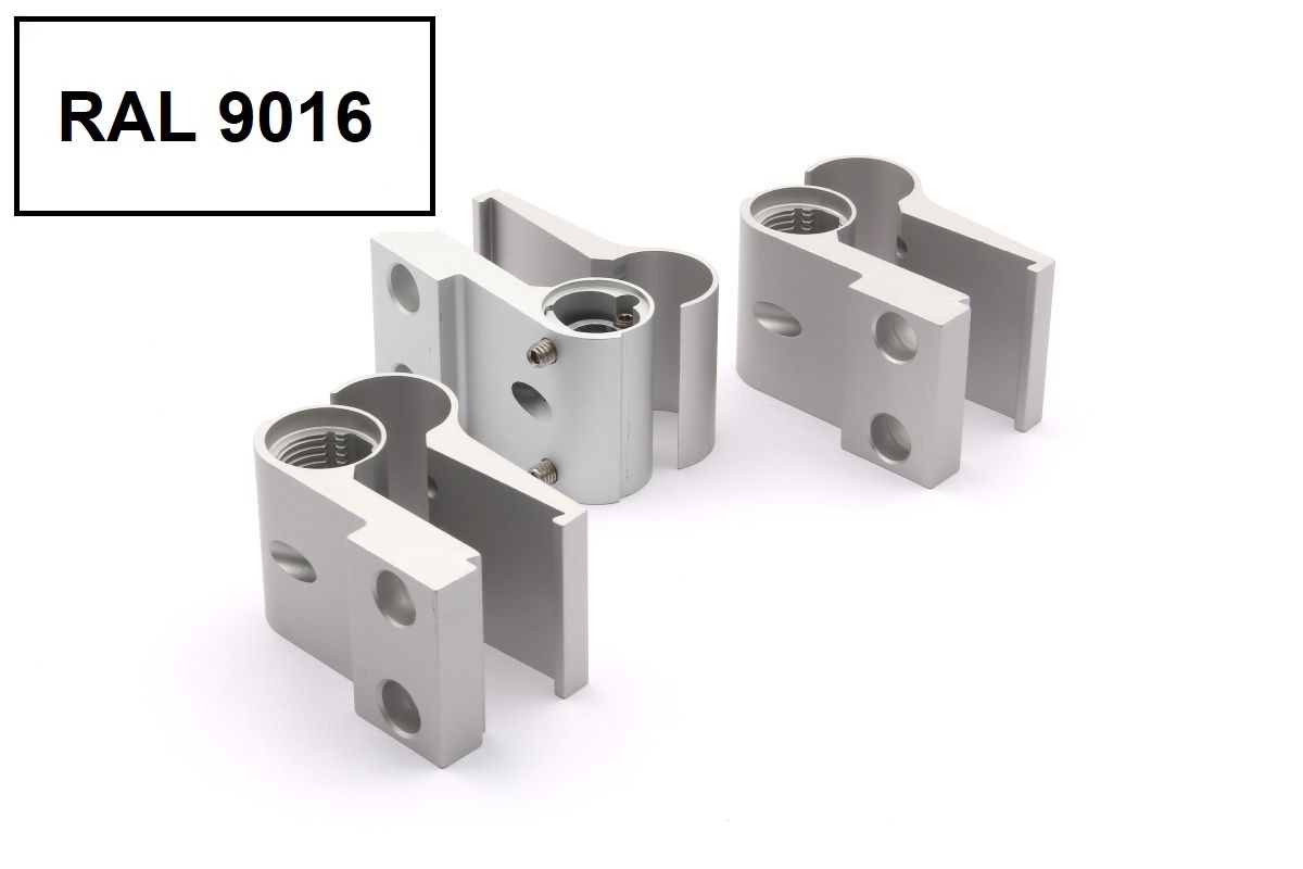 Dreiteiliges Schüco Aluminium-Aufsatztürband für nach innen oder außen öffnende Türen in weiß mit einem Achsmaß von 22 mm