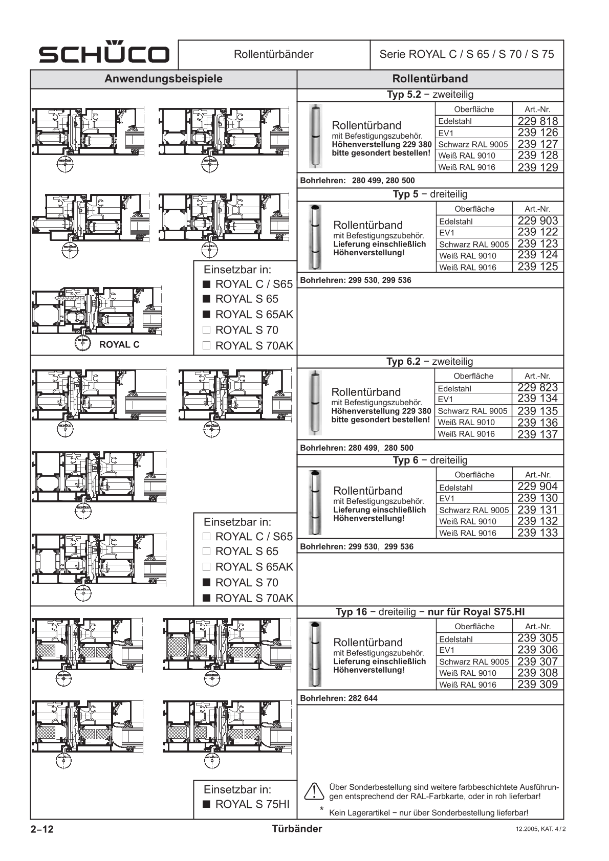 Schüco Rollentürband für die Verwendung mit dem System ADS/ADS HD, für nach außen öffnende Türen in weiß mit einer Bautiefe von 75 mm Lieferumfang je Stück: Rollentürband mit dreigeteilter Rolle, ohne BefestigungsmaterialAbmessungen: siehe technische Zeichnung Produktmerkmale:Gesamte Technik für die sichere Befestigung und Feinjustierung liegt im Falz- und FlügelrahmenVöllig verdeckte Befestigung - sichtbar ist nur die schmale, dreigeteilte Rolle Das Band verschmilzt harmonisch mit den vertikal verlaufenden Profillinien und kann auch farblich mit den entsprechenden Profilen eine Einheit bildenDas Rollentürband ermöglicht das Verstellen des Türflügels, ohne den Flügel aushängen zu müssenHerstellerangaben: Firma: Schüco Herstellerartikel: 239605 Hinweis: Wir empfehlen, das Austauschen von Beschlagteilen sowie das Justieren des Fensters/der Tür durch eine Fachkraft vornehmen zu lassen